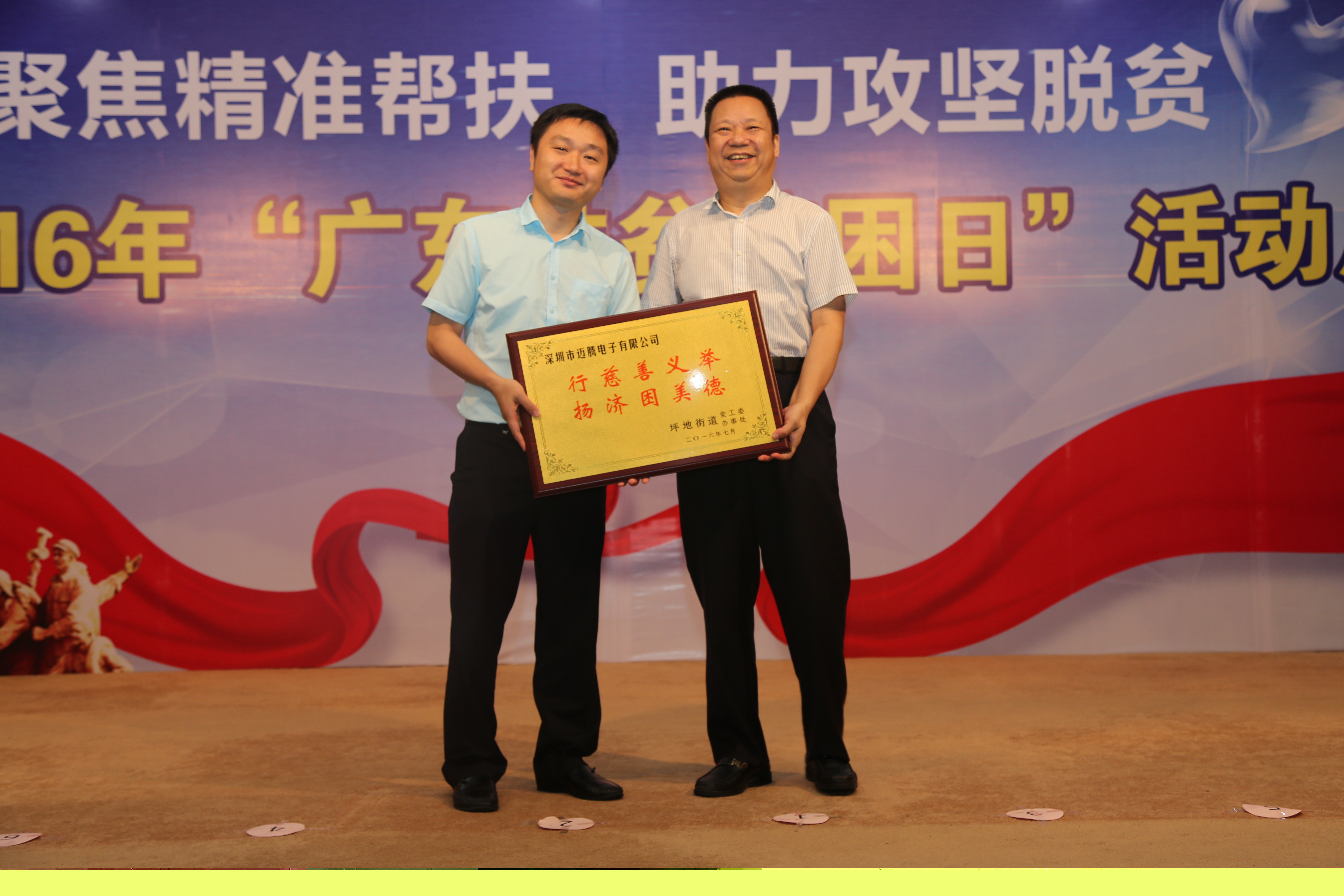 邁騰電子積極參與坪地街道扶貧開發(fā)“雙到”幫扶工作籌集資金活動。此次活動公司總經(jīng)理黃能君先生代表邁騰捐贈善款80000元人名幣,坪地街道黨工委書記鐘春平代表坪地街道現(xiàn)場接受捐贈支票,并為我司頒發(fā)榮譽牌匾。邁騰用實際行動展現(xiàn)了坪地企業(yè)良好的社會責(zé)任感和傾情奉獻(xiàn)的大愛情懷。